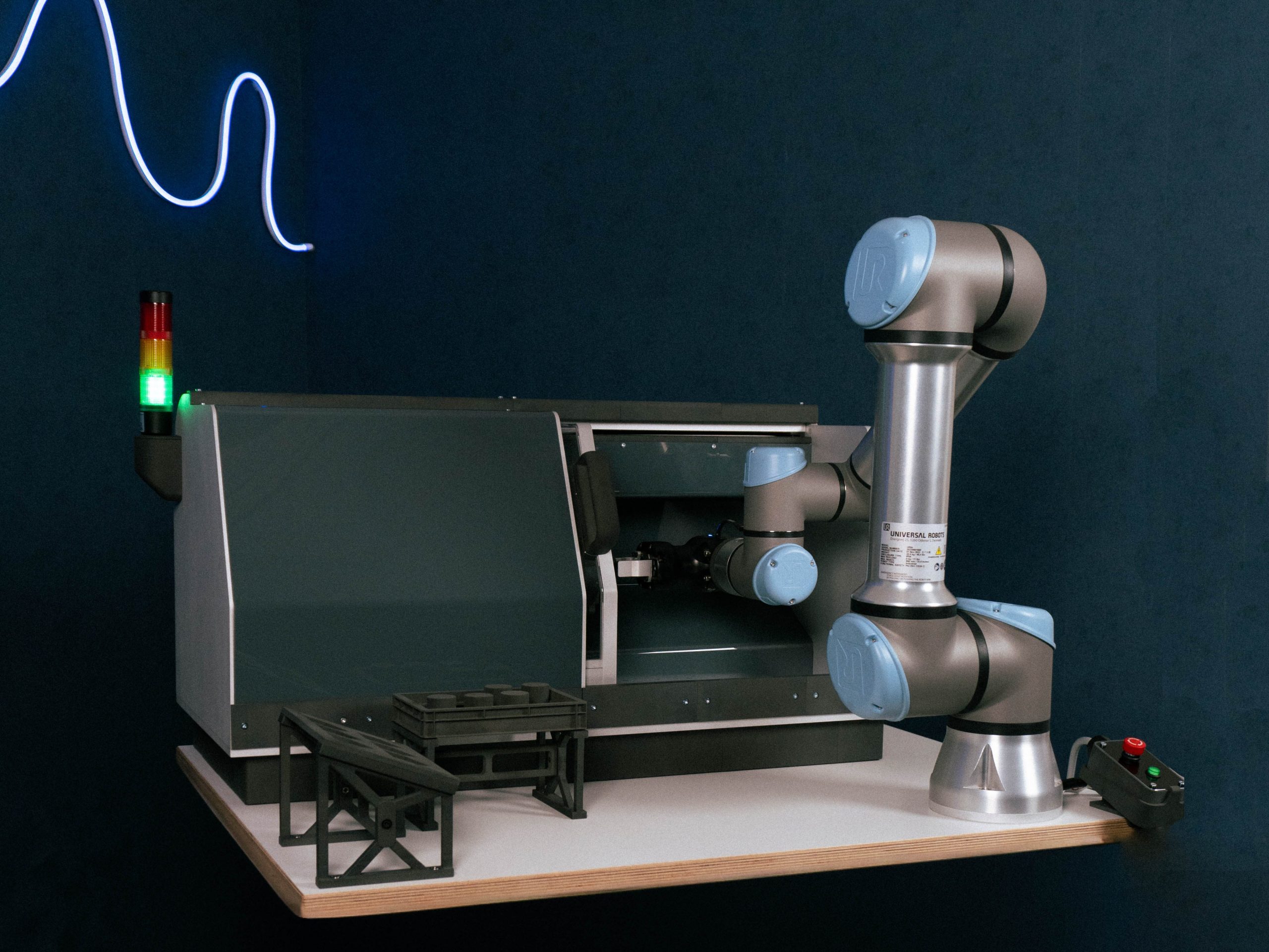 Unsere Dummy CNC für Universal Robots ist die ideale Wahl für Unternehmen, Berufsschulen und Ausbildungszentren, die ihre Mitarbeiter, Schüler oder Auszubildenden im Umgang mit Cobots schulen möchten. Sie überzeugt nicht nur durch das elegante Design, sondern ist auch äußerst robust und widerstandsfähig.